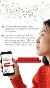 Dich erwarten 24 liebevoll gestaltete Sprachnachrichten, die dir jeden Morgen eine kleine Dosis Selbstfürsorge schenken – genau da, wo du gerade bist.